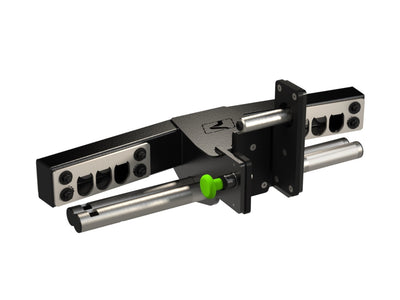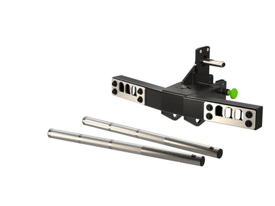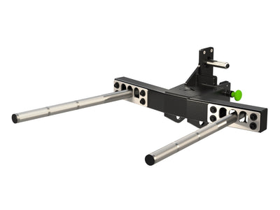 Constructed with 1-5/16” stainless steel pipe, featuring knurled handles, three different with adjustments and our quick slide and lock keyway design. Also, comes with built in storage for the handles. This attachment is made for a 3” square upright with 1” through holes.